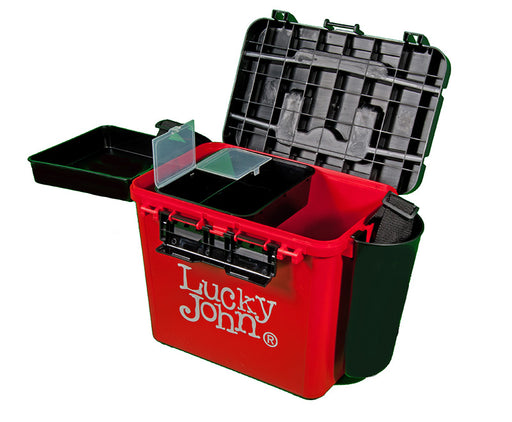 Lucky John Ice Fishing Seat Box (მოდელი LJ2050) ეს კომპაქტური, ორ განყოფილებიანი პლასტმასის ყუთია ყინულზე სათევზაოდ. ყუთს აქვს სპეციალური განყოფილე...